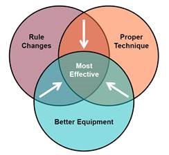 • Reducing exposure to head impacts, and increasing coach training, and rule changes are important in reducing concussion risk.